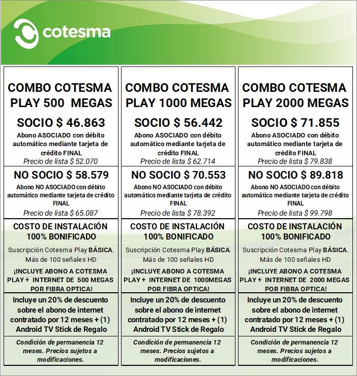 Todo cliente de Cotesma que ya posea o contrate Internet por Fibra Óptica, puede solicitar el servicio y acceder a los contenidos a través de la Plataforma Multidispositivo.